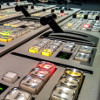 Description: Black and white close-up of a DSLR with long lens